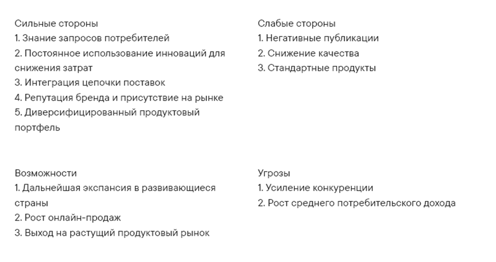 SWOT-анализ поставщиков